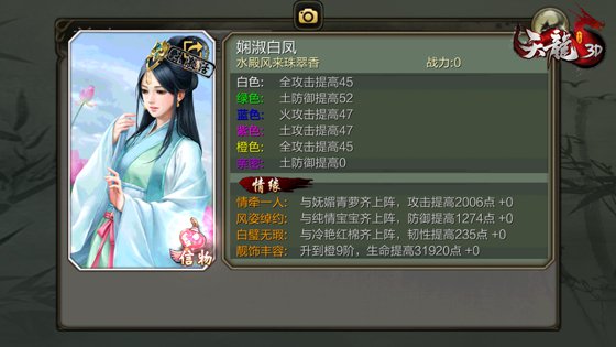 【邂逅佳人收集信物,為妳的特點添加助力】在《天龍3D》中,各具特色又復原原著的佳人壹直是玩家青睞的對象,不只是因為長得美觀,更因為邂逅之後對玩家战力的大幅進步。 在行將更新的新資料片"龍脈覺悟"中,除了佳人本身能對不同特點進行進步,假如妳能夠收集到佳人心儀的信物,各項加成又將成倍增長!想要佳人战力高,仍是得用信物獲取佳人壹笑啊。 【龍脈覺悟新信物,嫻淑白鳳佳人信物擺夷軟d曝光】不同品階的嫻淑白鳳佳人能夠進步玩家的土、火及全攻擊數值,與冷傲紅梅上陣又能進步玩家的韌性。