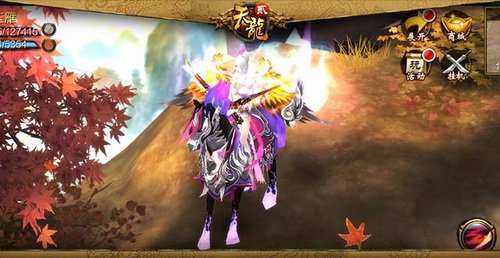传说骑上坐骑后速度立刻加成55%,取得途径:跨服比武——群龙聚首中取得。闪电一般穿梭在热闹的姑苏城内,金属紫的鬃毛随风飘动,话音刚落,就看见一道绚烂的紫光从身边飞过!