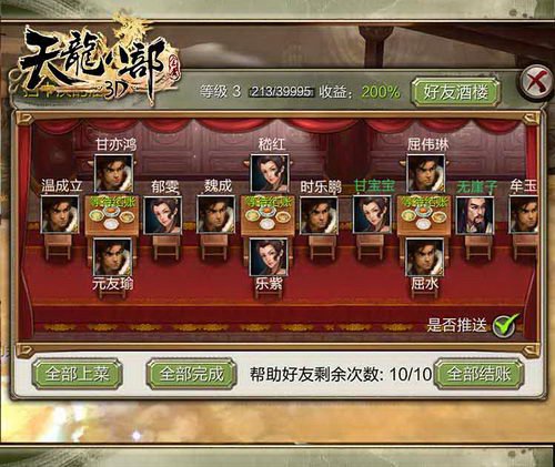 《天龍八部3D》中酒樓體系給玩家提供了一個把美好感傳播給他人的當地,一道道美食,一桌桌賓客,一千雙手就有一千種味道的呈現,眾豪俠圍坐一堂,各抒己見,談天說地,訴說江湖趣事,敘述武俠傳奇。 從個體生命的遷徙,到食材的交流運輸,從烹調方法的演變,到人生命運的流通,人和食物的倉促腳步,從來不曾停歇。就像江湖日子一樣,離心離德。 刀光劍影充滿著日子中的點點滴滴,在快節奏的日子中找到一絲恬靜,靜靜地坐下來享受一頓美食,舒緩下因為緊張的神經也是不錯的選擇。 盡管一日三餐,幾乎成為人類共同的飲食製度,相同的飯食在中國,卻變幻出不同的日子節奏,塑造出各異的人生感觸。 心境影響著食物的質量,相同影響著閑散俠客的來訪,出色的食材做出的食物足以吸引來喬峰一樣的尖端俠客,可見俠客們對於美味也都有著獨到的見地。